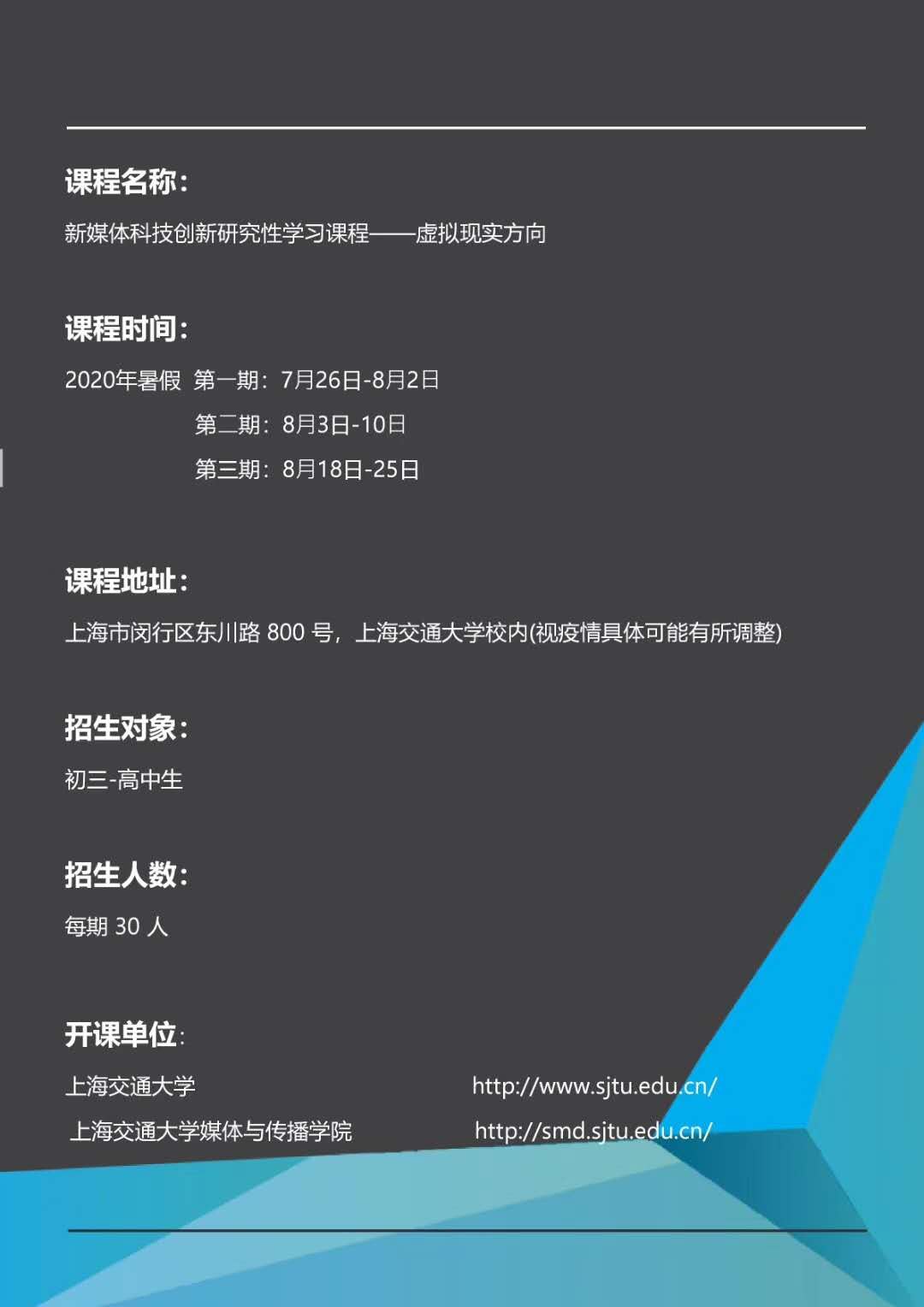 上海优学联合上海交通大学联名举办的新媒体科技创新课程开课啦!