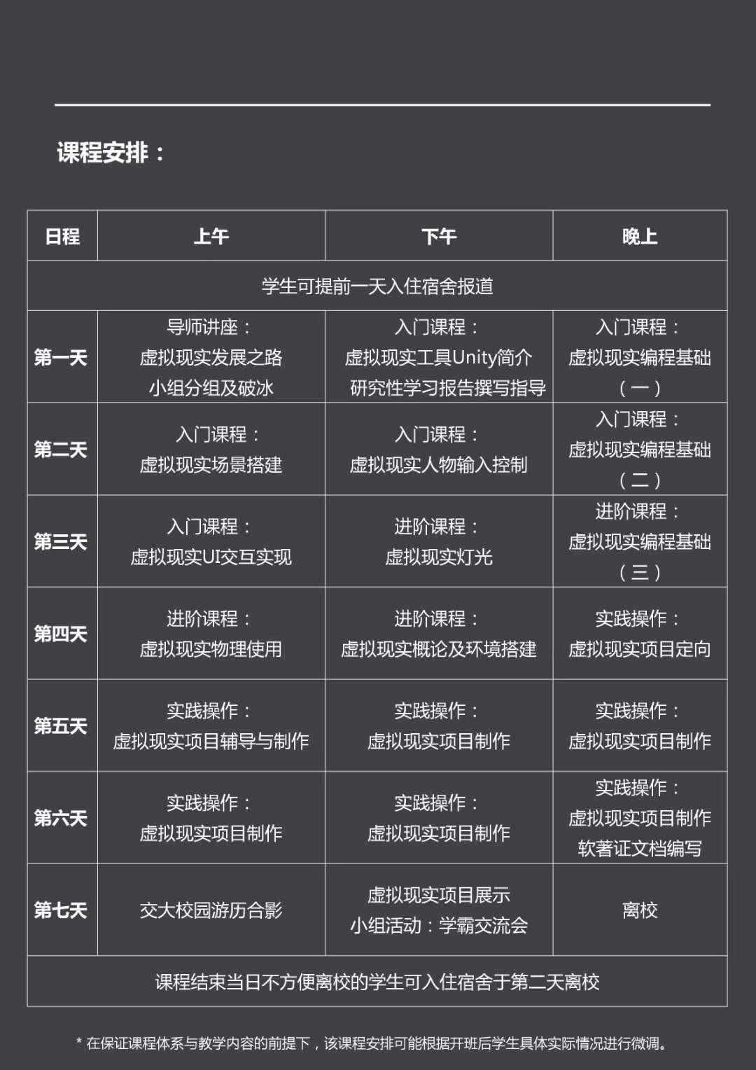 课程持续7天,满行程安排,绝不会让你虚妄此行!