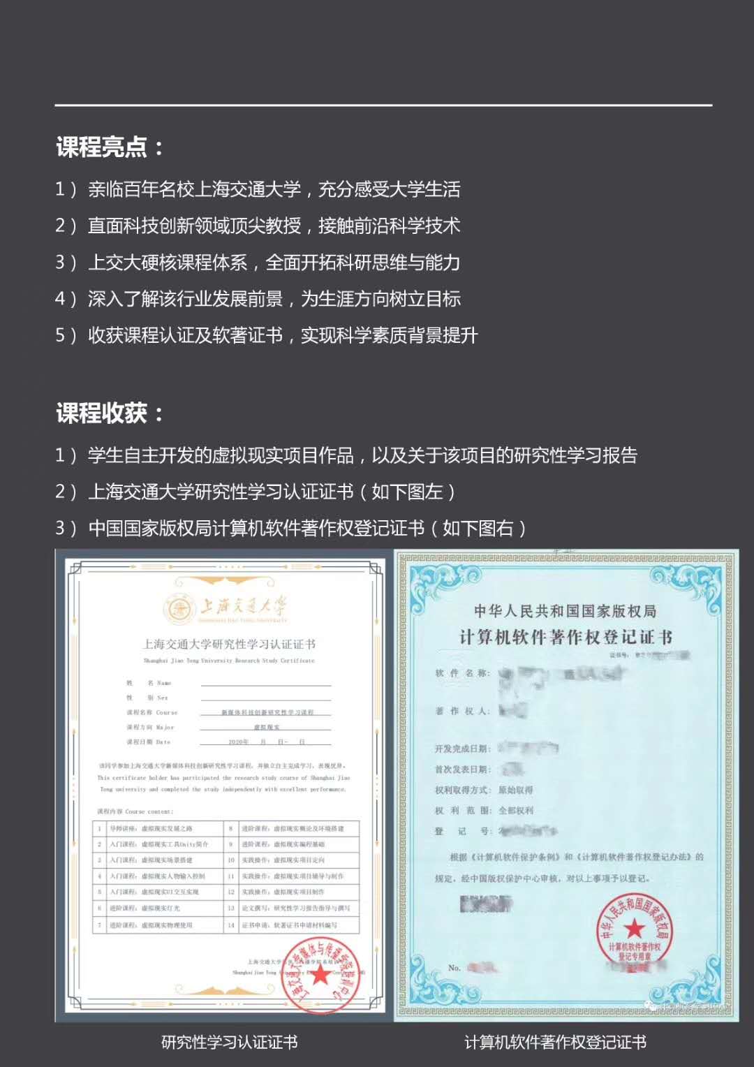 课程成功结业还能获得上海交大研究性学习证书、中国国家版权局计算机软件著作权登记证书。